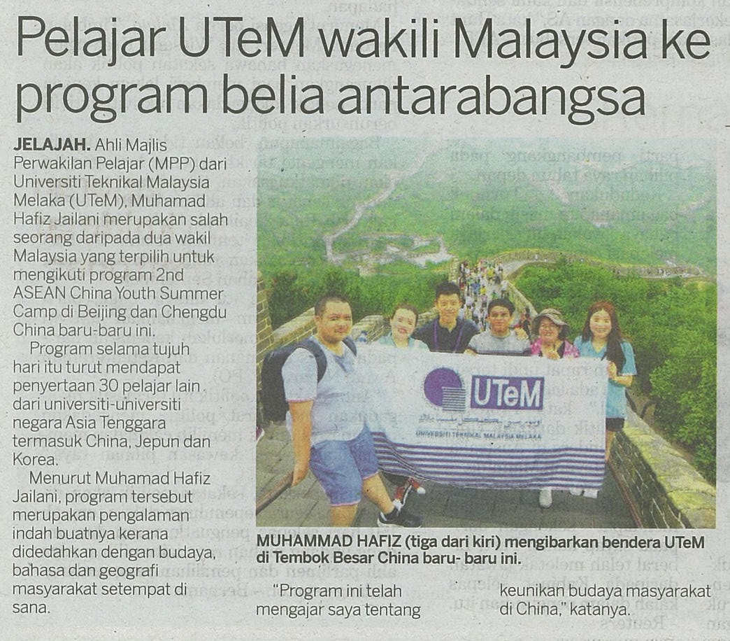 Pelajar UTeM wakili Malaysia ke program belia antarabangsa