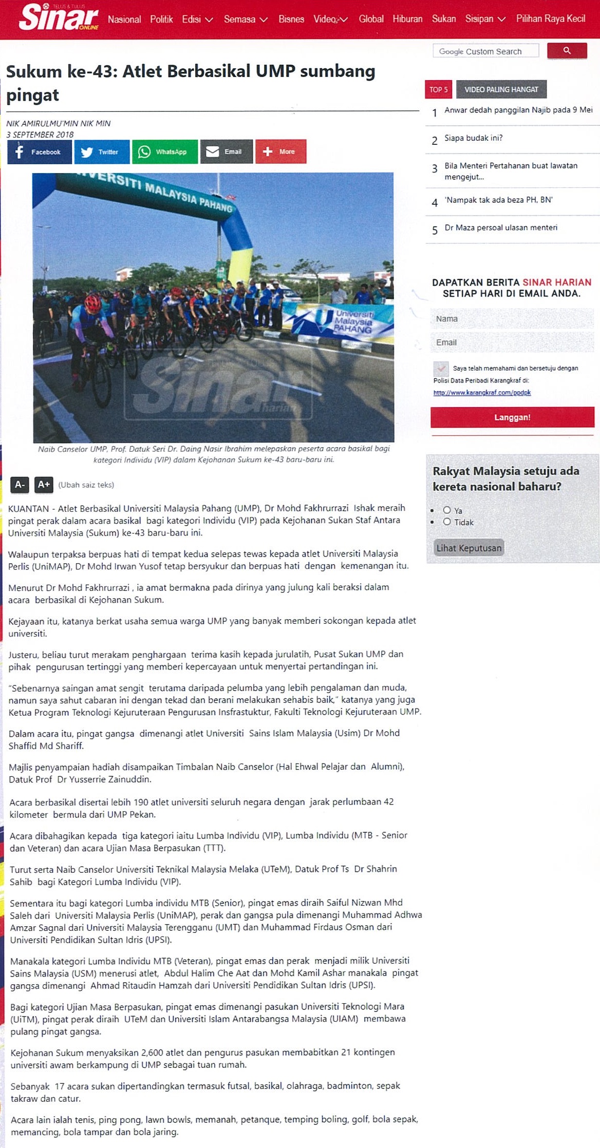 Sukum ke-43: Atlet berbasikal UMP sumbang pingat