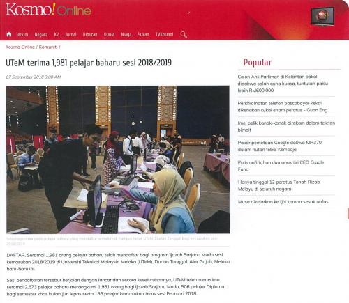 UTeM terima 1981 pelajar baharu sesi 2018/2019