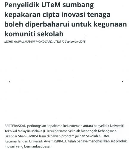 Penyelidik UTeM sumbang kepakaran cipta inovasi tenaga boleh diperbaharui untuk kegunaan komuniti sekolah (part1)