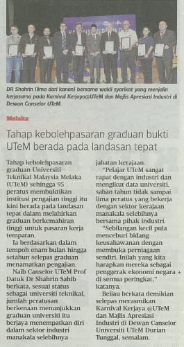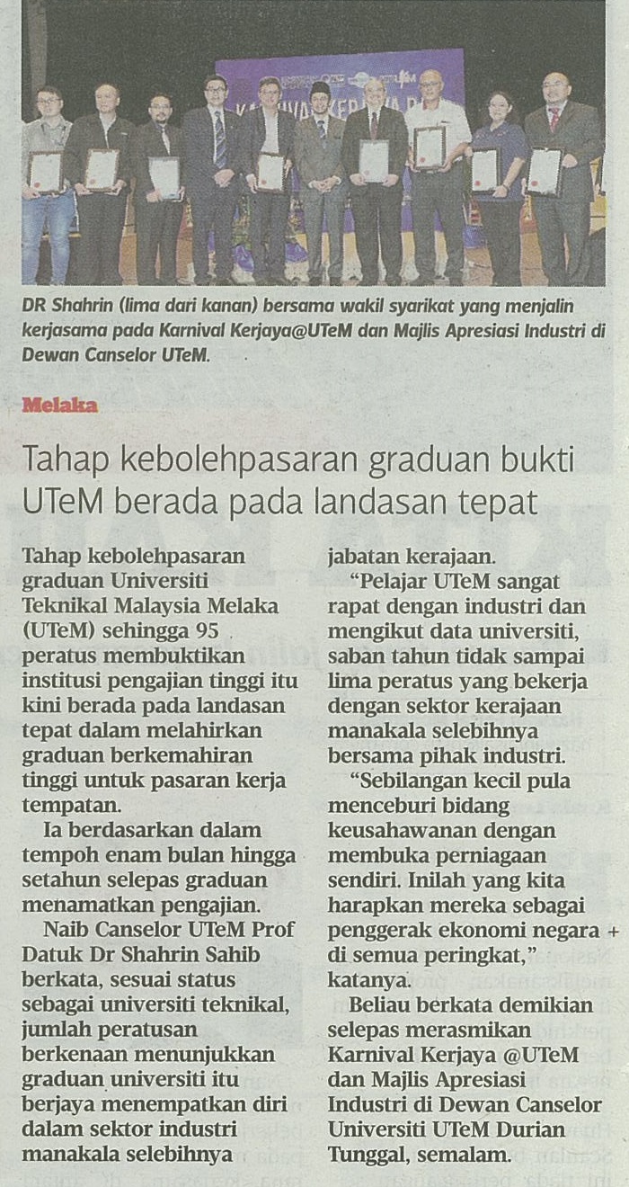 Tahap kebolehpasaran graduan bukti UTeM berada pada landasan tepat