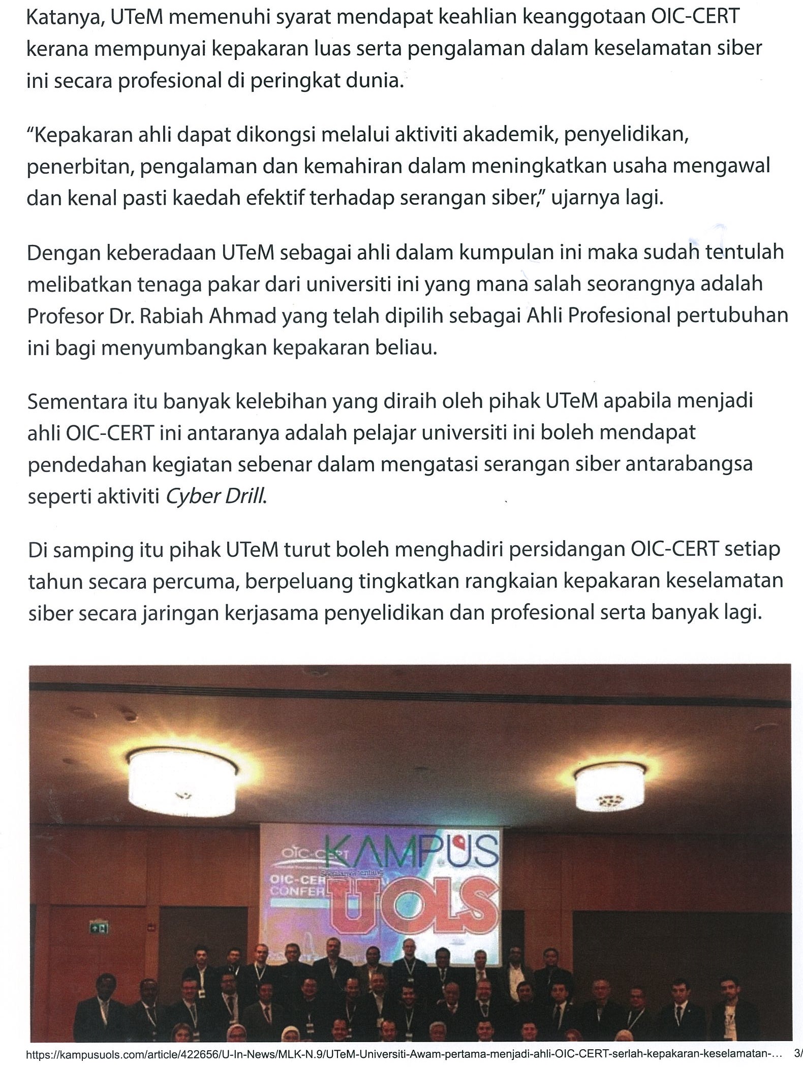 UTeM Universiti Awam pertama menjadi OIC CERT, serlah kepakaran keslematan siber peringkat dunia (part3)