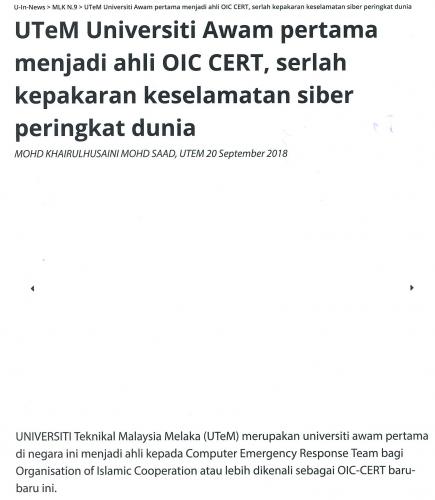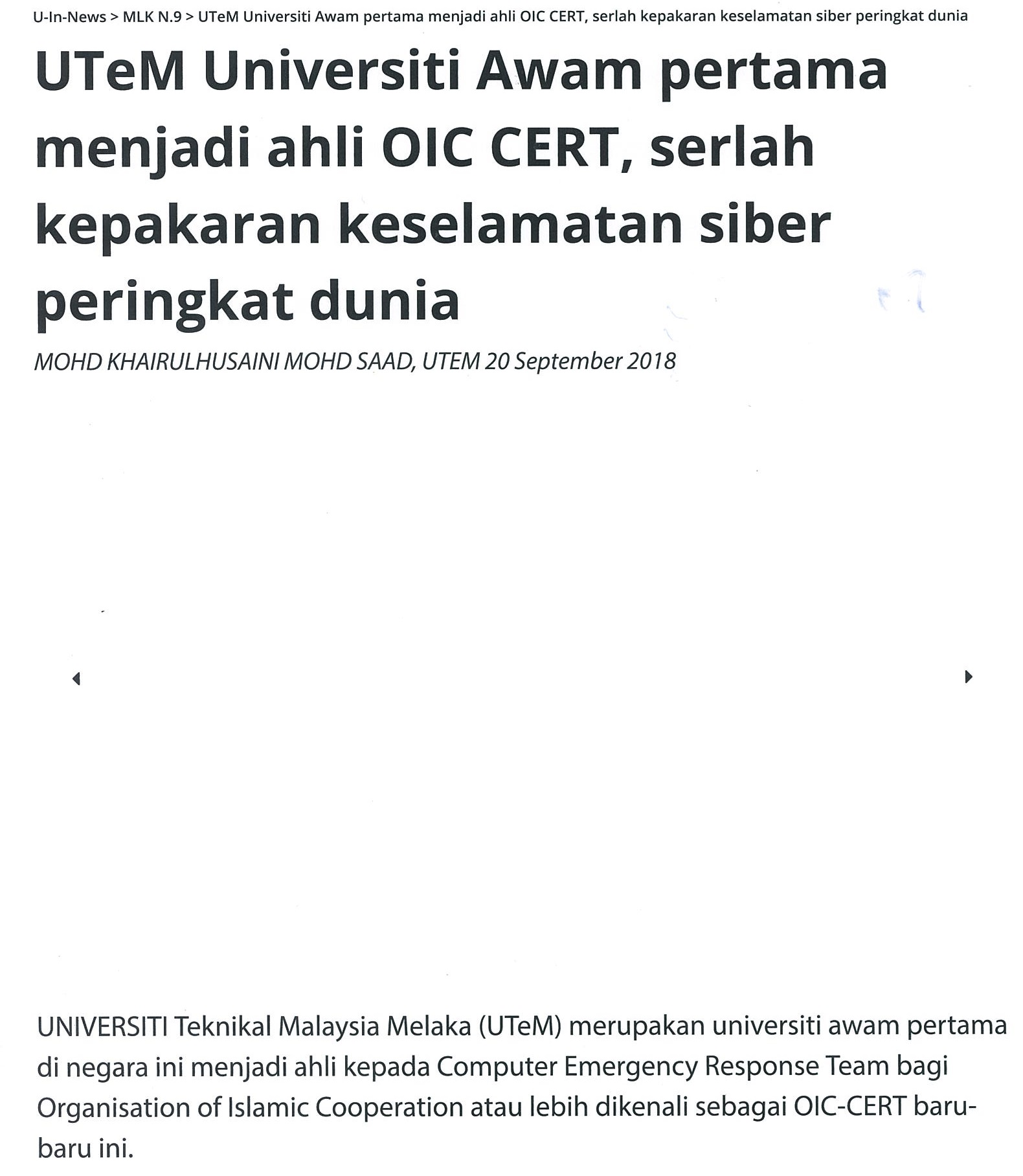 UTeM Universiti Awam pertama menjadi OIC CERT, serlah kepakaran keslematan siber peringkat dunia (part1)