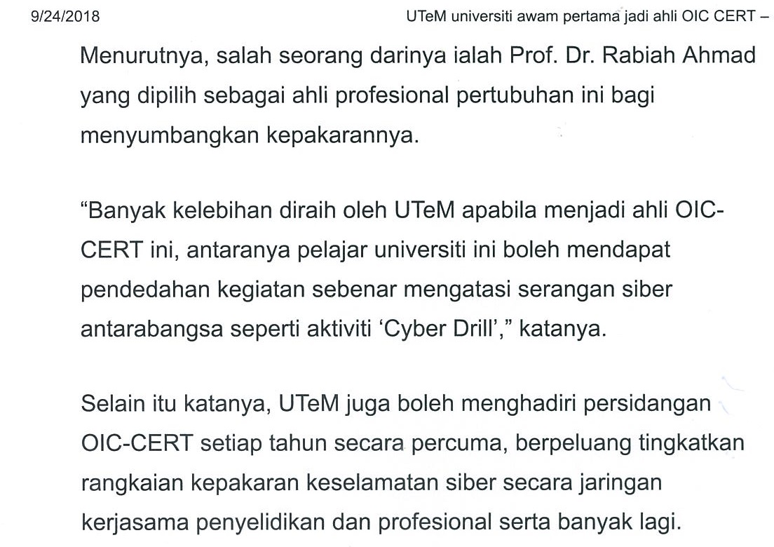 UTeM unievrsiti awam pertama jadi ahli OIC CERT (part3)