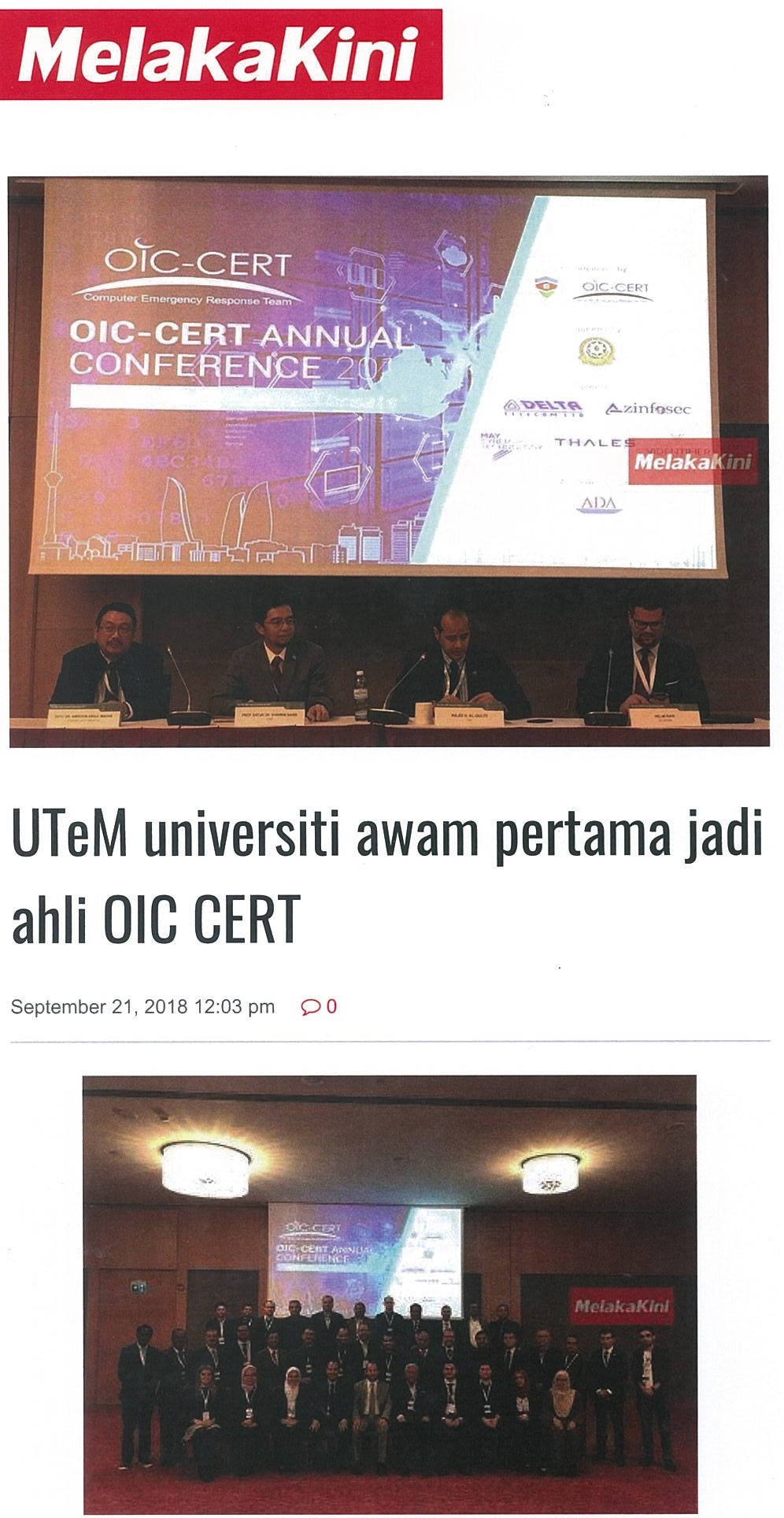 UTeM unievrsiti awam pertama jadi ahli OIC CERT (part1)