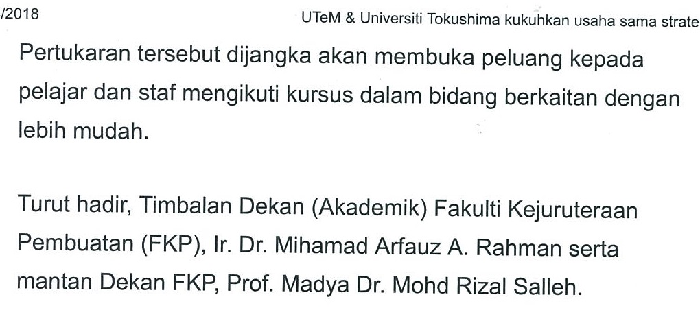 UTeM & Universiti Tokushima kukuhkan usaha sama strategik (part3)