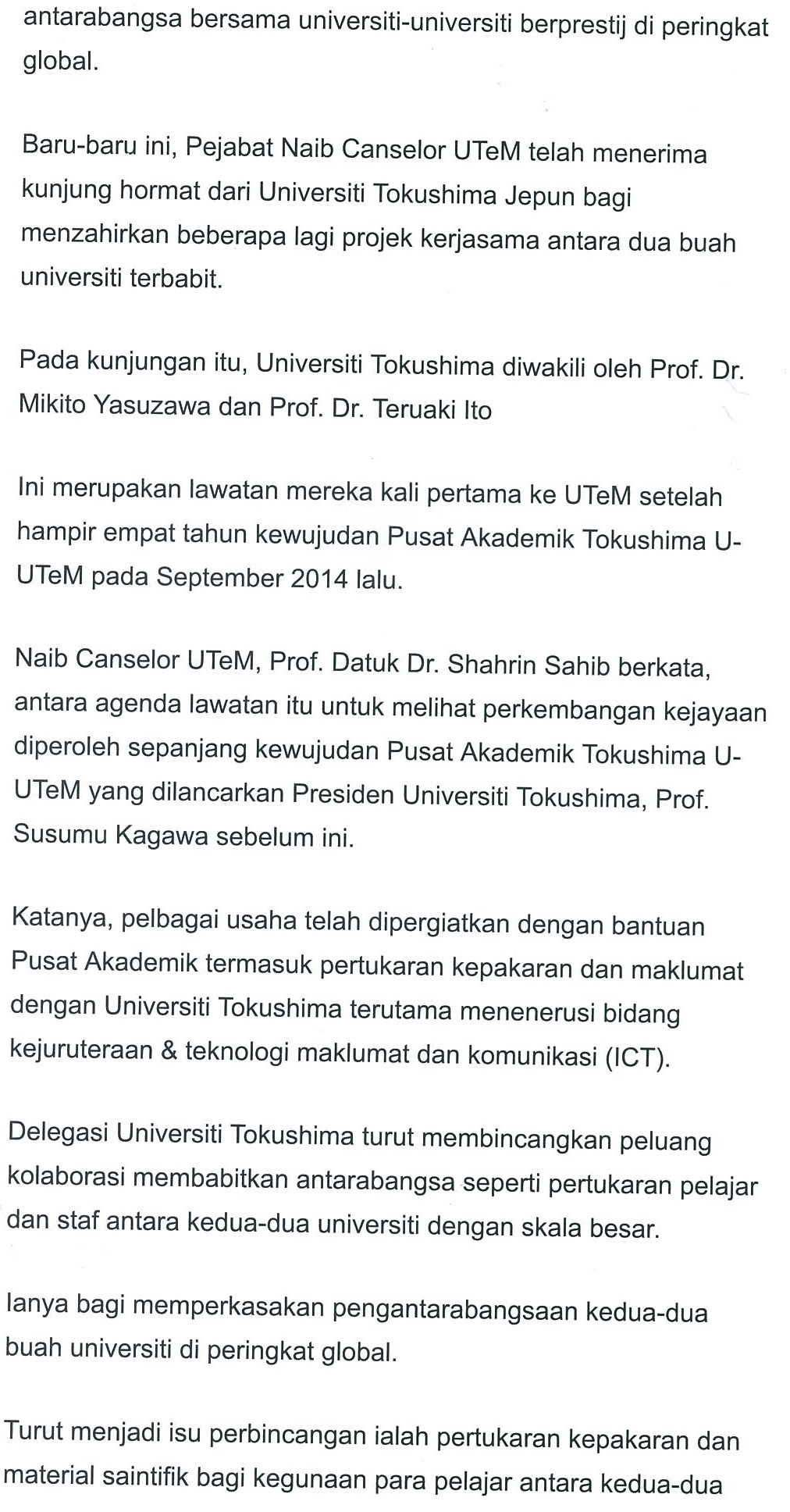 UTeM & Universiti Tokushima kukuhkan usaha sama strategik (part2)