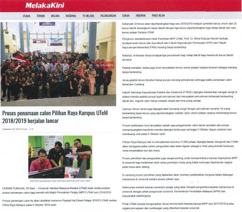 Proses penamaan calon Pilihan Raya Kampus UTeM 2018/2019 berjalan lancar