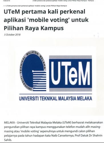 UTeM pertama kali perkenal aplikasi 'mobile voting' untuk Pilihan Raya Kampus (part1)