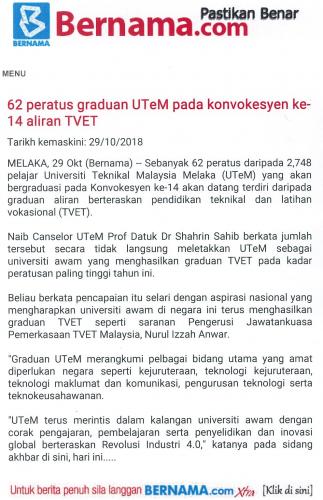62 peratus graduan UTeM pada konvokesyen ke-14 aliran TVET