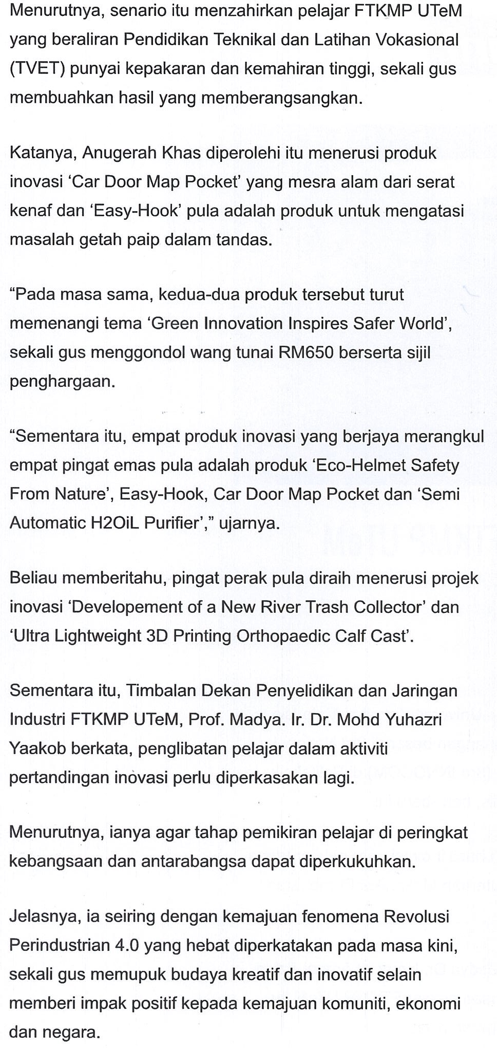 Inovasi pelajar FTKMP UTeM menyerlah (part2)
