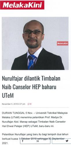 Nurulfajar dilantik Timbalan Naib Canselor HEP baharu UTeM (part1)