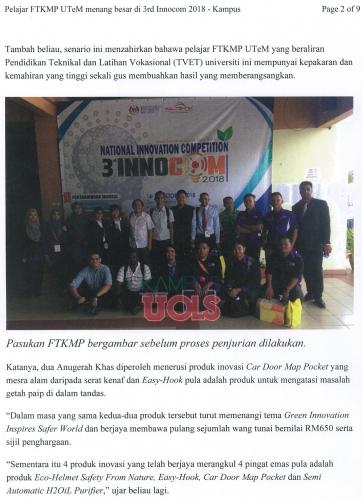 Pelajar FTMK UTeM menang besar di 3rd Innocom 2018 (Part2)