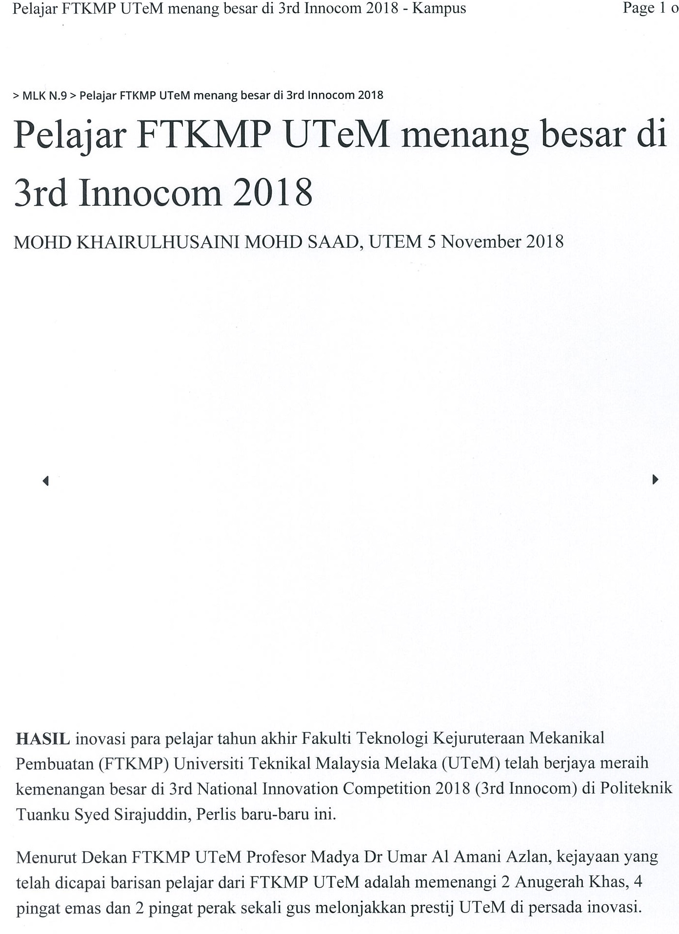 Pelajar FTMK UTeM menang besar di 3rd Innocom 2018 (Part1)