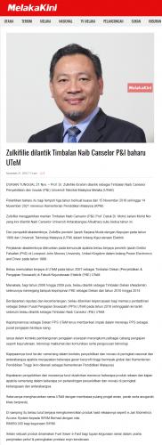 Zulkifilie dilantik Timbalan Naib Canselor P&I baharu UTeM