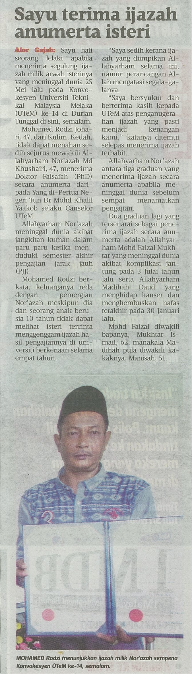 Sayu Terima Ijazah Anumerta Isteri