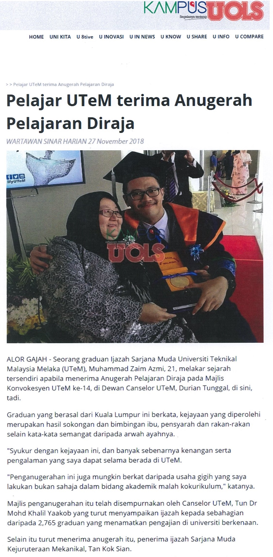 Pelajar UTeM terima Anugerah Pelajaran Diraja