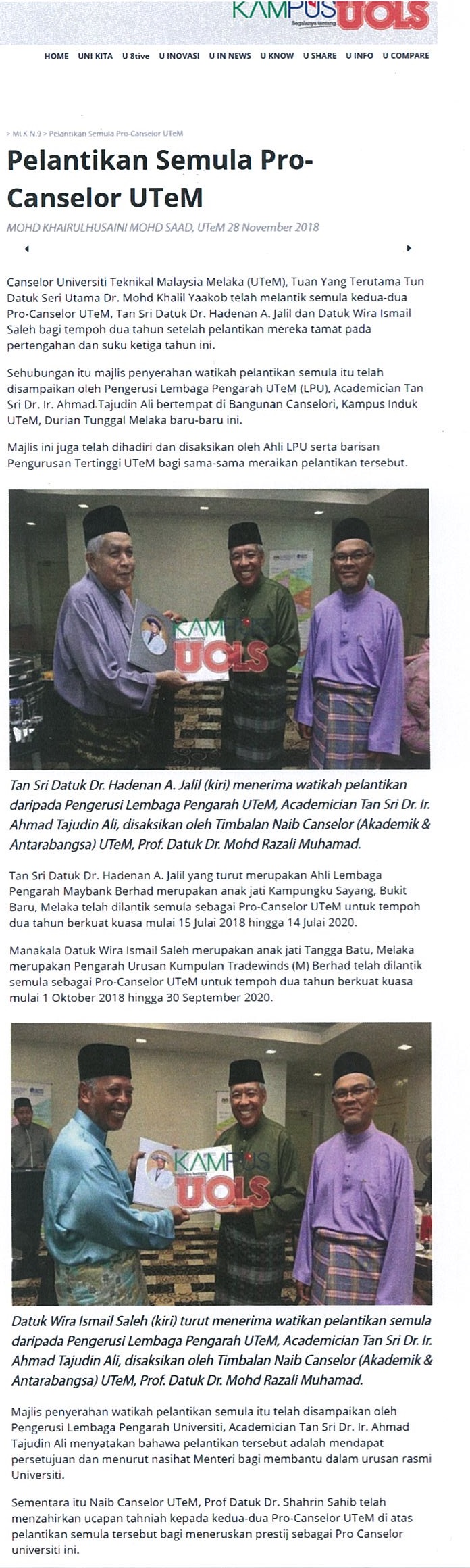 Pelantikan semula Pro-Canselor UTeM