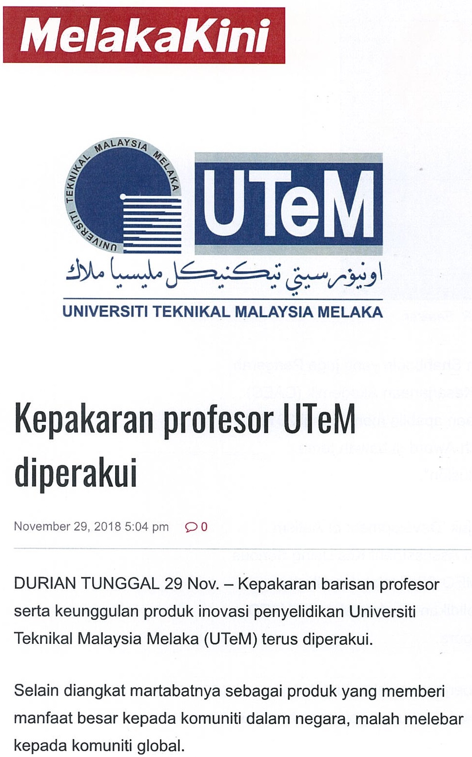 UTeM In Newspapers