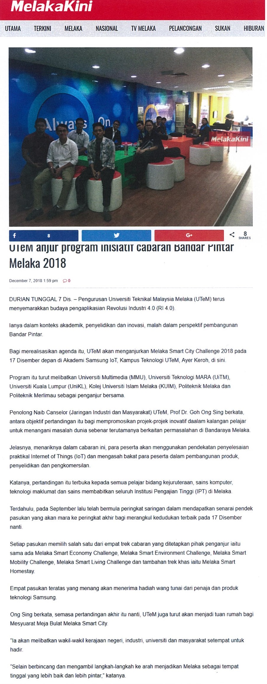 UTeM anjur program inisiatif cabaran Bandar Pintar Melaka 2018