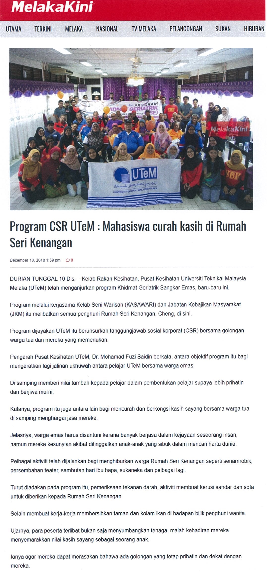 Program CSR UTeM : Mahasiswa curah kasih di Rumah Seri Kenangan