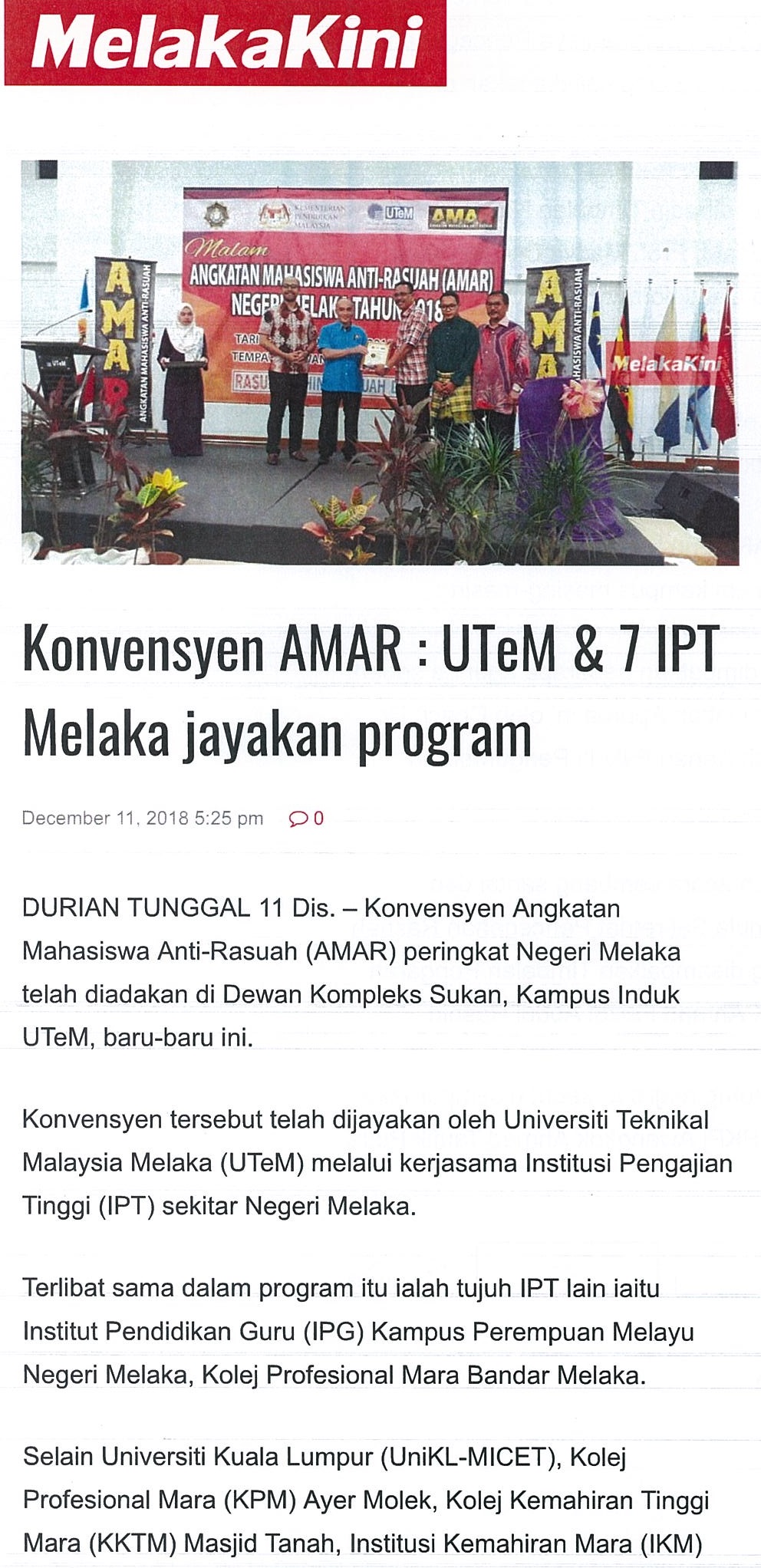 Konvensyen AMAR : UTeM & 7 IPT Melaka jayakan program (part1)