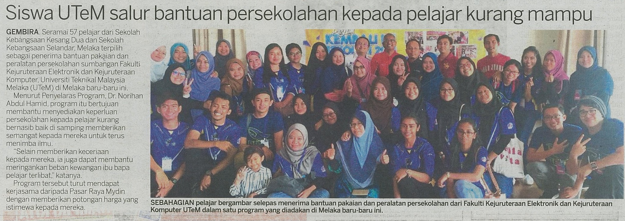 Siswa UTeM salur bantuan persekolahan kepada pelajar kurang mampu