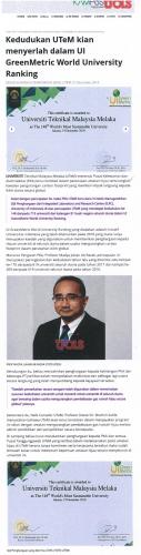 Kedudukan UTeM kian menyerlah dalam UI Greenmetric World University ranking