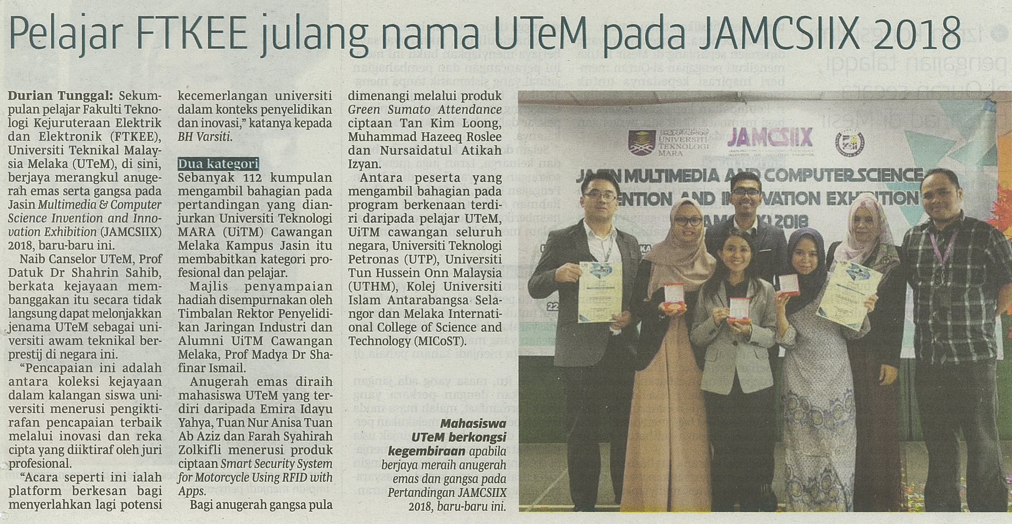 Pelajar FTKEE julang nama UTeM pada JAMCSIIX 2018