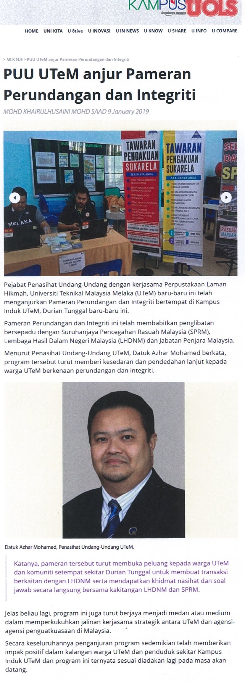 PUU UTeM anjur Pameran Perundangan & Integriti