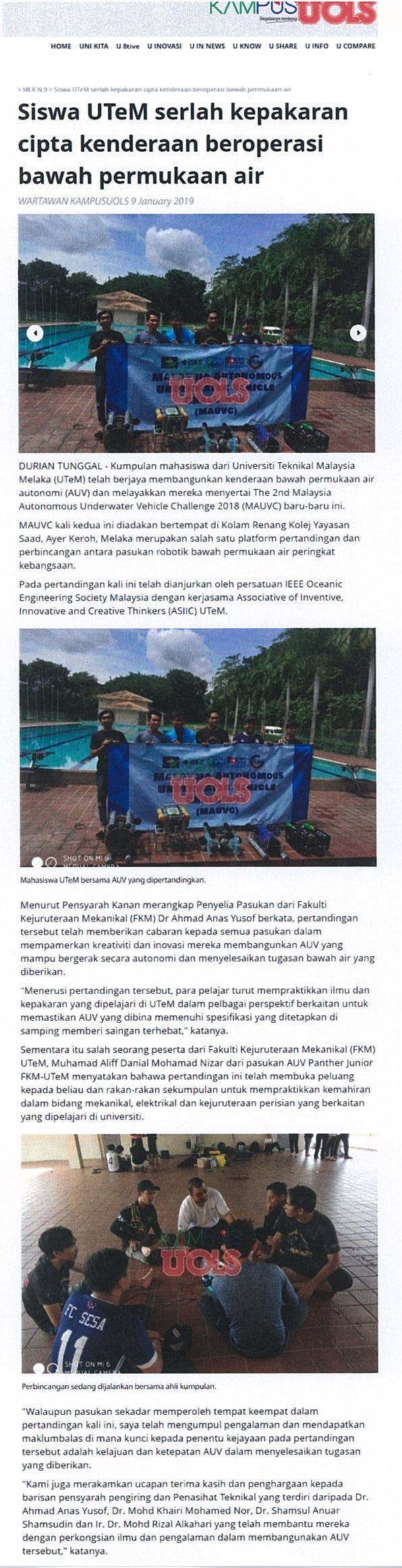 Serlah kepakaran : Siswa UTeM cipta kenderaan operasi bawah permukaan air