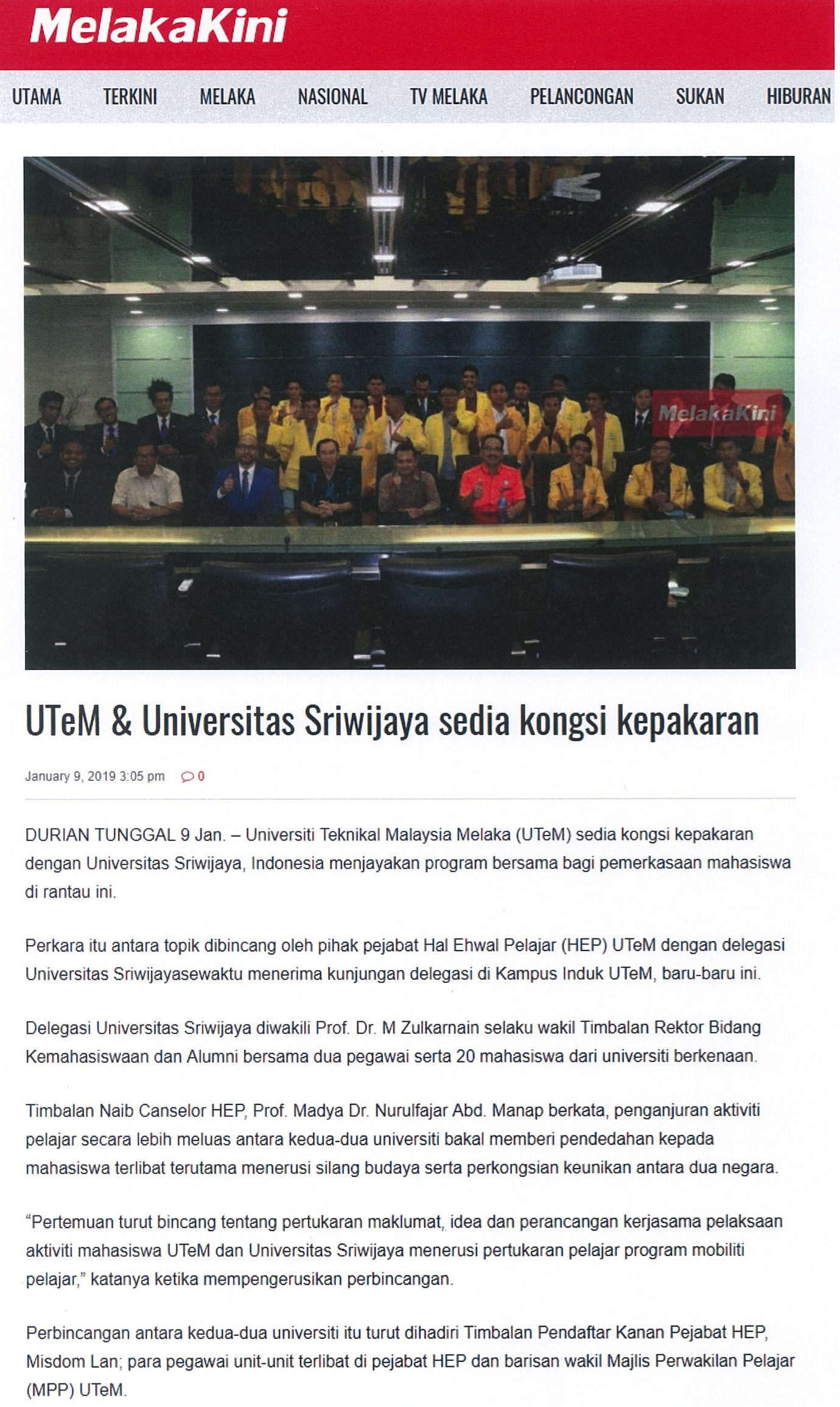 UTeM & Universitas Sriwijaya sedia kongsi kepakaran