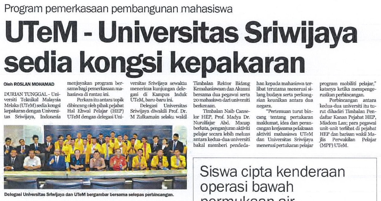 UTeM - Universitas Sriwijaya sedia kongsi kepakaran