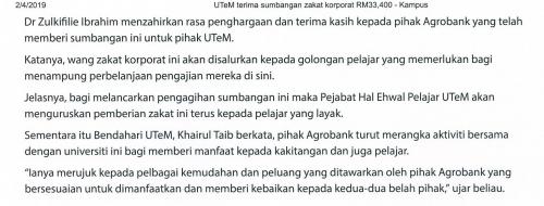 UTeM terima sumbangan zakat korporat RM33,400 (part2)