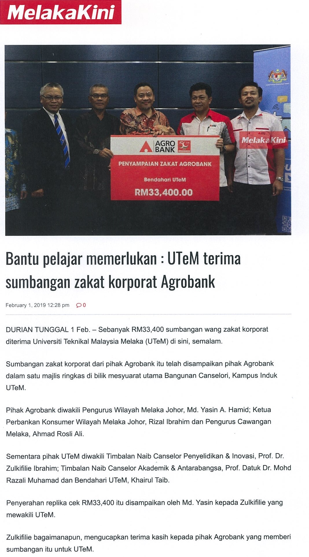 Bantu pelajar memerlukan : UTeM terima sumbangan zakat korporat Agrobank (part1)