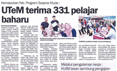 UTeM terima 331 pelajar baharu