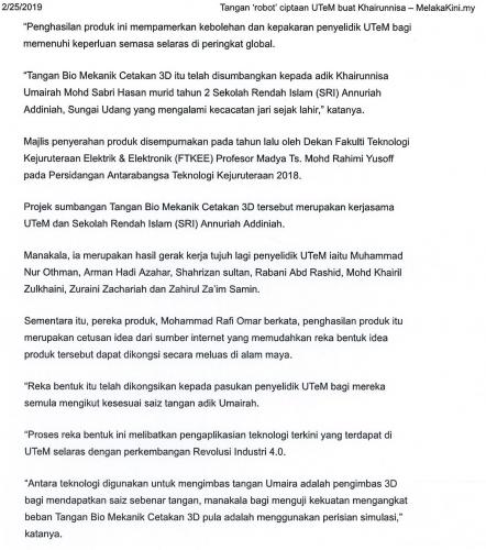 Tangan 'robot' ciptaan UTeM buat Khairunnisa (part2)