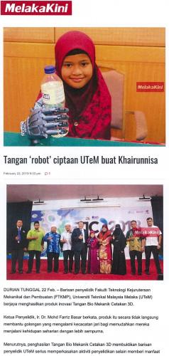 Tangan 'robot' ciptaan UTeM buat Khairunnisa (part1)