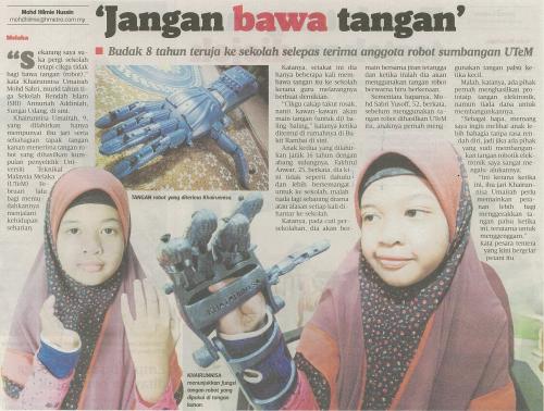 Budak 8 tahun teruja ke sekolah selepas terima anggota robot sumbangan UTeM