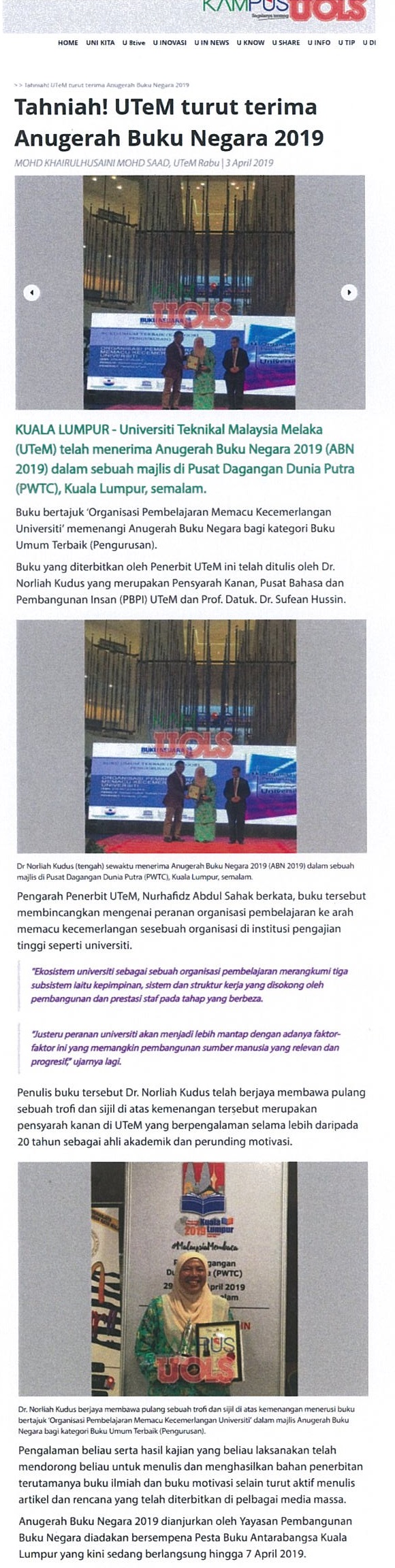 Tahniah! UTeM turut terima Anugerah Buku Negara 2019