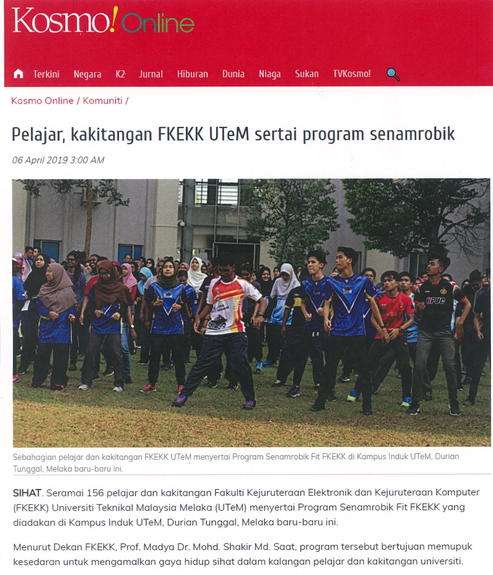 Pelajar, kakitangan FKEKK UTeM sertai program senamrobik