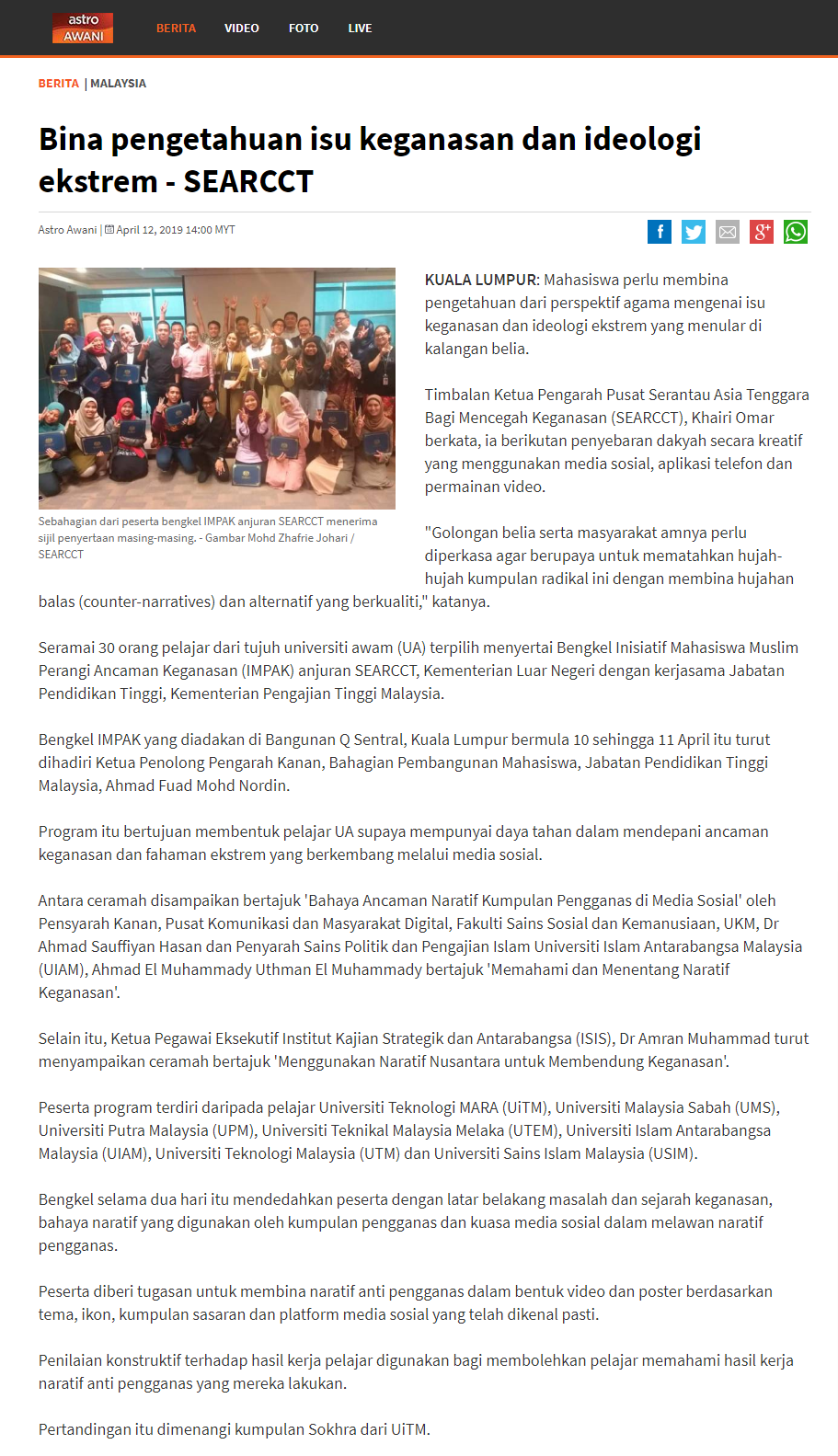 BINA PENGETAHUAN ISU KEGANASAN DAN IDEOLOGI EKSTREM - SEARCCT