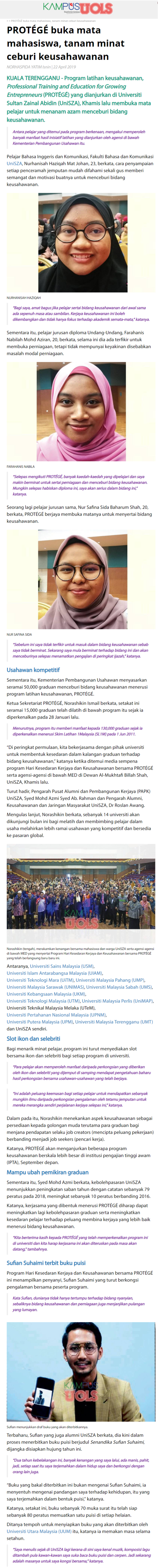 PROTÉGÉ buka mata mahasiswa, tanam minat ceburi keusahawanan