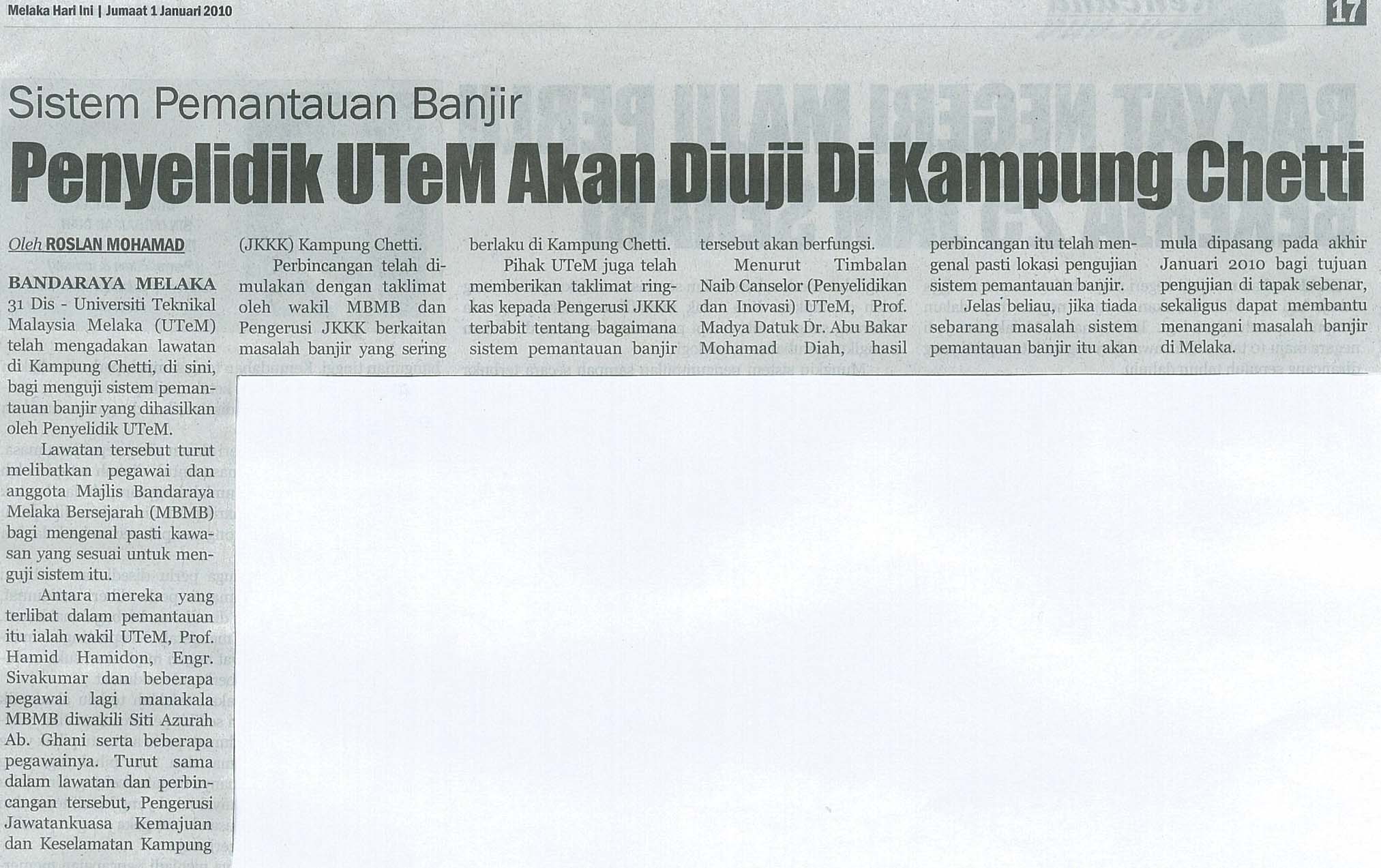 Penyelidik UTeM akan diuji di Kampung Chetti