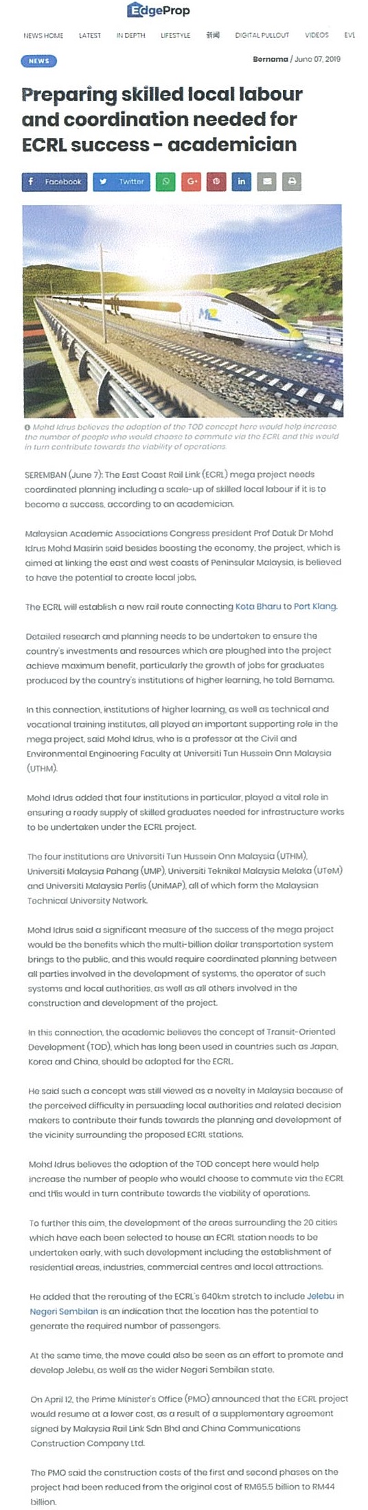Preparing skilled local labour and coordination needed for ECRL success - academician