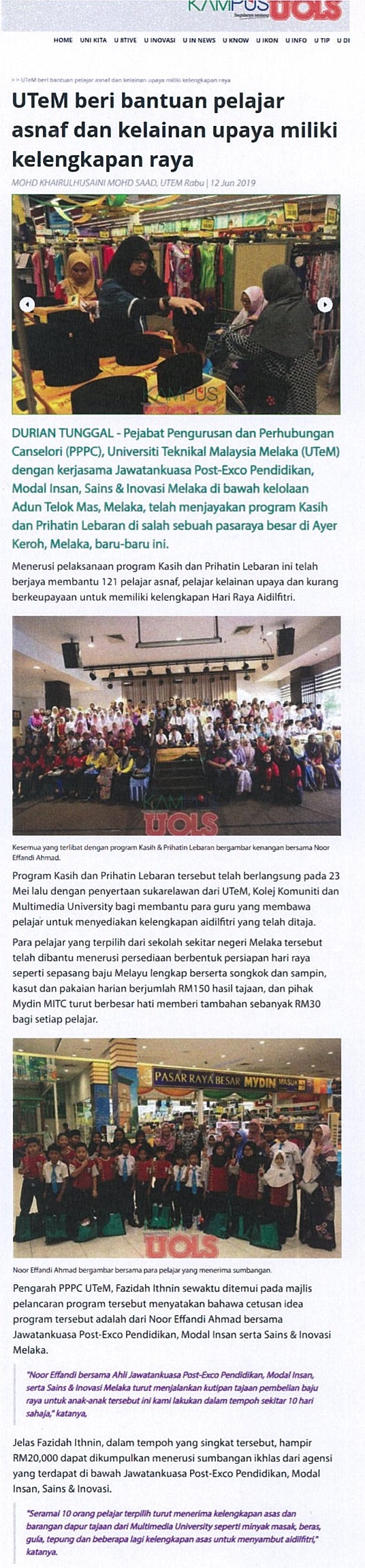 UTeM beri bantuan pelajar asnaf dan kelainan upaya miliki kelengkapan raya