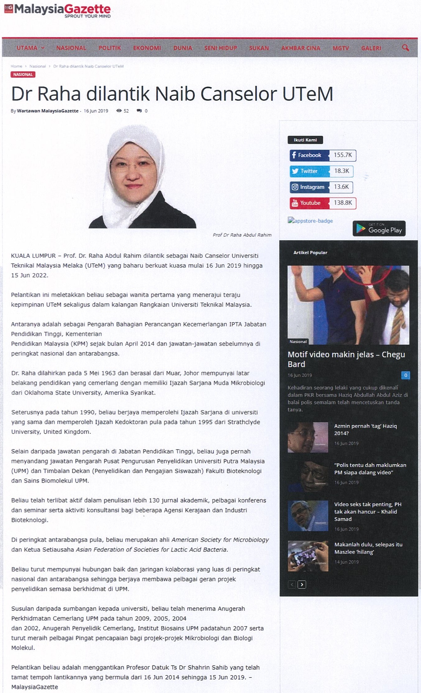 Dr Raha dilantik Naib Canselor baharu UTeM