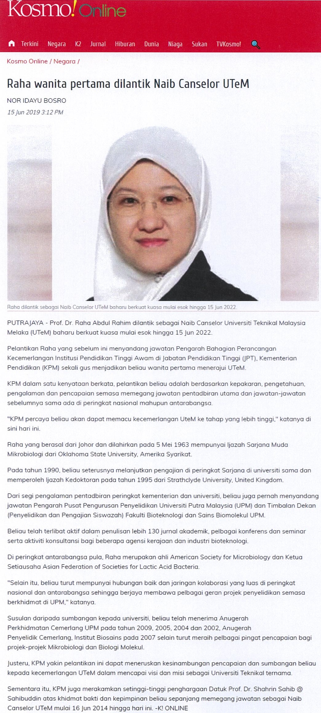 Raha wanita pertama dilantik Naib Canselor UTeM