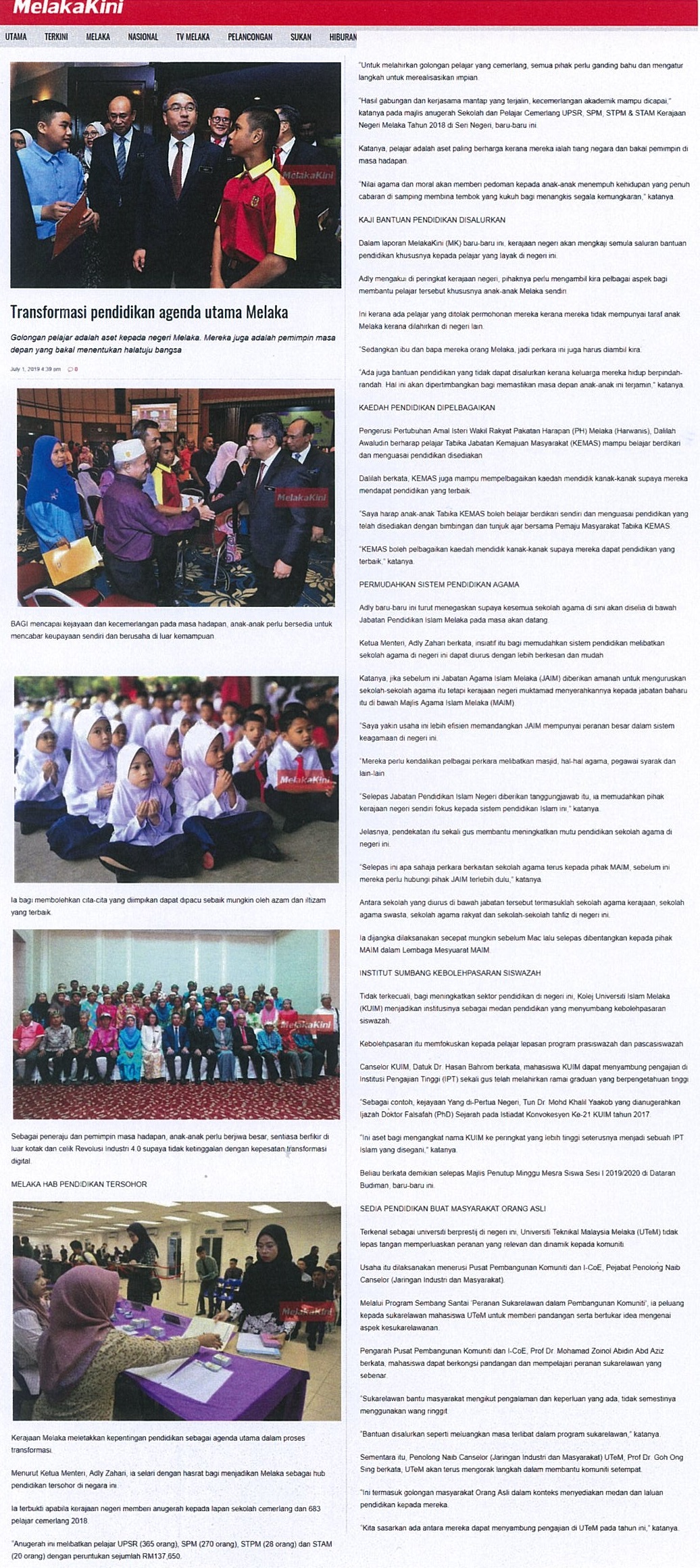 Transformasi pendidikan agenda utama Melaka