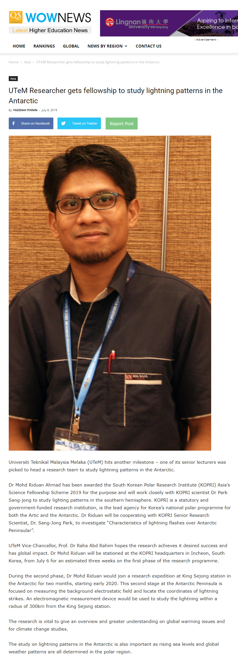 UTeM Researcher gets fellowship to study lightning patterns in the Antarctic